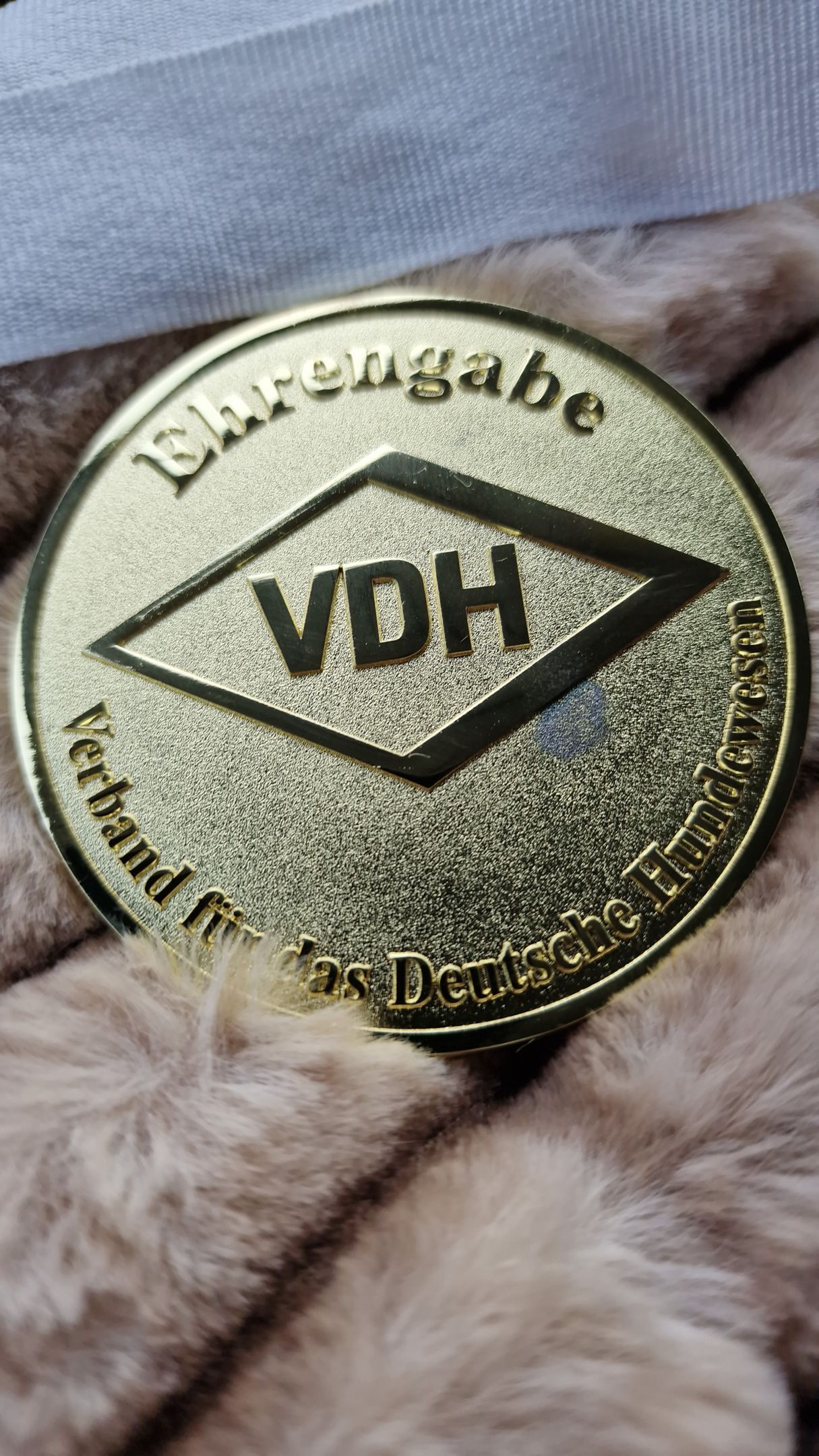 Dankbar und stolz sind wir auch, dass uns der Richter Tomislav Trinic (Ayaba Kennel Kroatien) eine der beiden Ehrengaben Medaillen von VDH zuerkannt hat.