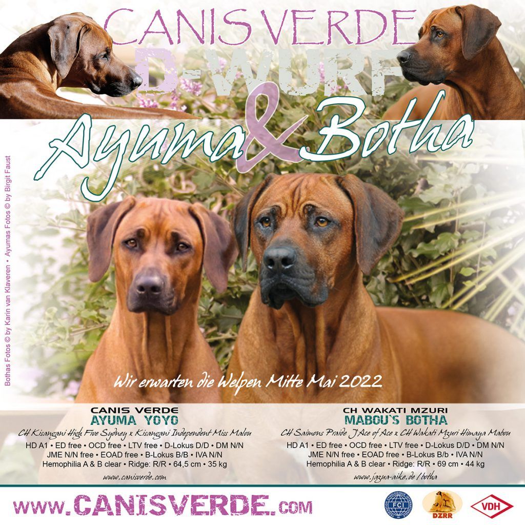 Voller Freude und Stolz verkünden wir Botha's Verpaarung mit Ayuma "Canis Verde Ayuma YoYo" aus dem deutschen Kennel "Canis Verde" von Birgit Faust.